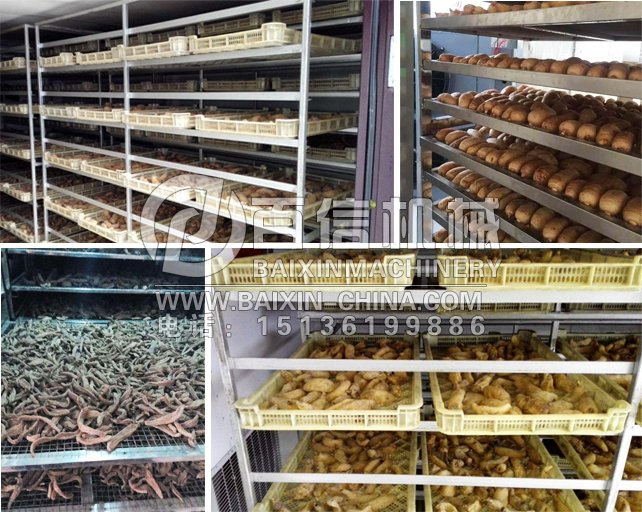 采用平流式、穿流式烘干方式,保證風(fēng)量均勻無(wú)死角,提高烘干效率。天麻多糖,塊莖直徑可達(dá)6厘米以上,出水慢烘干周期長(zhǎng),烘干溫度35-55℃;相對(duì)濕度控制為30%-60%;(一烘)每批烘干量為0.8噸,干貨量為0.4噸,烘干時(shí)間為20小時(shí)內(nèi)。物料攤放密度為15kg/㎡,總計(jì)攤放面積為53.33㎡,共設(shè)計(jì)6個(gè)烘車(chē),烘車(chē)尺寸1290*800*2000mm。