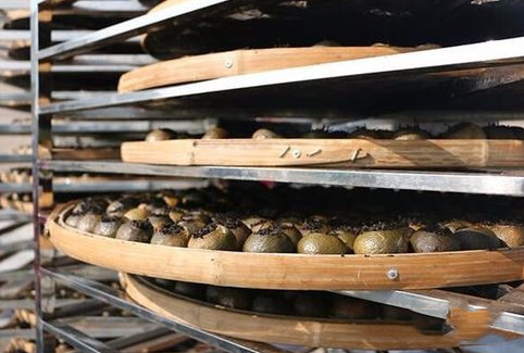 5、殺青:殺青一方面為了殺菌消毒,一方面是為了去掉柑皮的青味,并將果皮里的一些苦澀物質(zhì)轉(zhuǎn)化成甘醇的香氣。