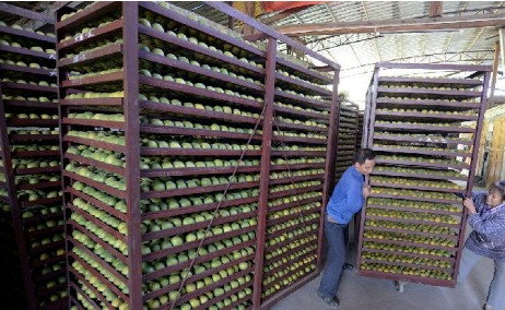 一、將已糖化后熟、發汗的羅漢果果實,按照大、中、小分別裝入烘箱,進入烤爐,點火升溫。在烘烤過程中,要掌握溫度由低溫→高溫→降溫三個過程,掌握不同階段的溫度和濕度控制。一階段果實剛入爐時,由于含水量還較高,首先用逐步升溫,以45~50℃維持20~24小時,使水分逐步蒸發,這樣持續約2天,使大部分水分排出。第二階段的溫度逐步提高到65~70℃,使羅漢果水分蒸發,這樣持續約2天,使大部分水分排出。第三階段降溫到55~60℃之間,繼續烘烤兩天,使果實的重下降到相當鮮果的25~30%即成干果。當自然降溫后,待果實冷卻后出爐。在烘干過程中,羅漢果烘干房內各個地方的溫度是均勻的,所以羅漢果在烘干過程中脫水均勻,無需人工去翻轉果實,大大節省了人工操作。